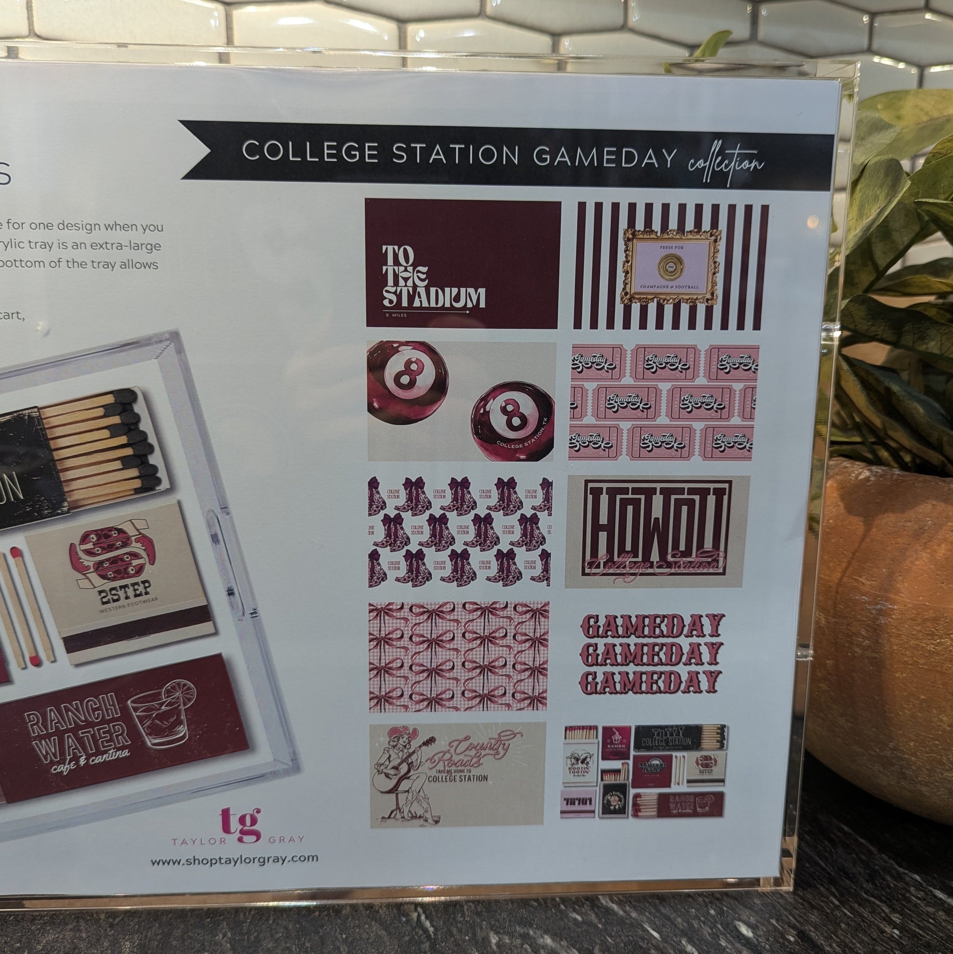 Decorate your space and show your school spirit with our extra large Acrylic Tray with ten interchangeable inserts. A pocket on the bottom of the tray allows the inserts to be easily switched and protected. Perfect for your bar cart, ottoman or even for makeup on your vanity.
