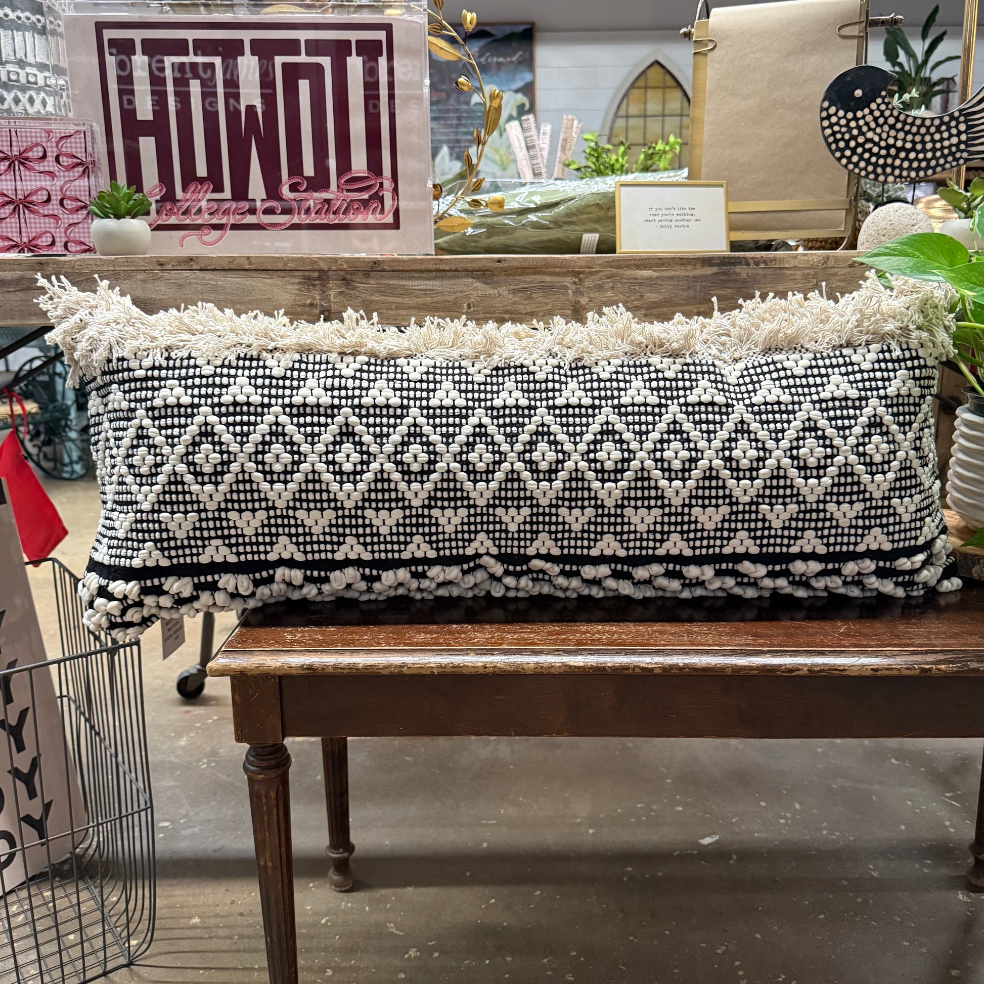 If you need a pillow that packs a punch, this is it! Our large Lumbar Fringe Pillow makes an impression on any settee, bench or sofa.