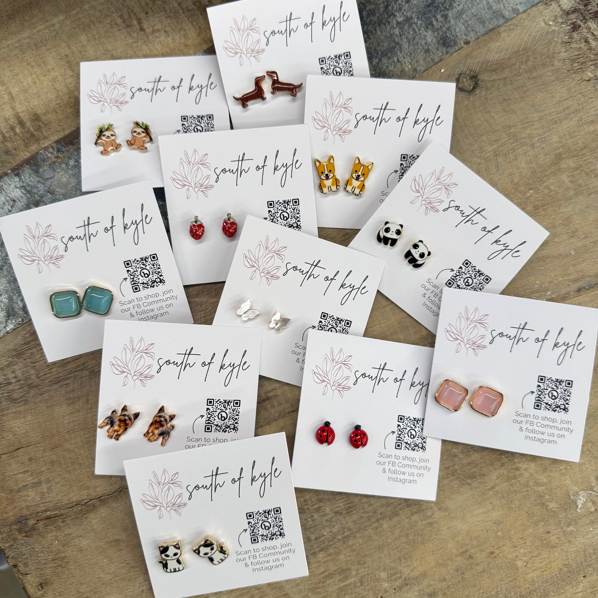 Elevate your look with our Studs of All Kinds! Animals, strawberries, gems and more are the perfect thing for every day wear.