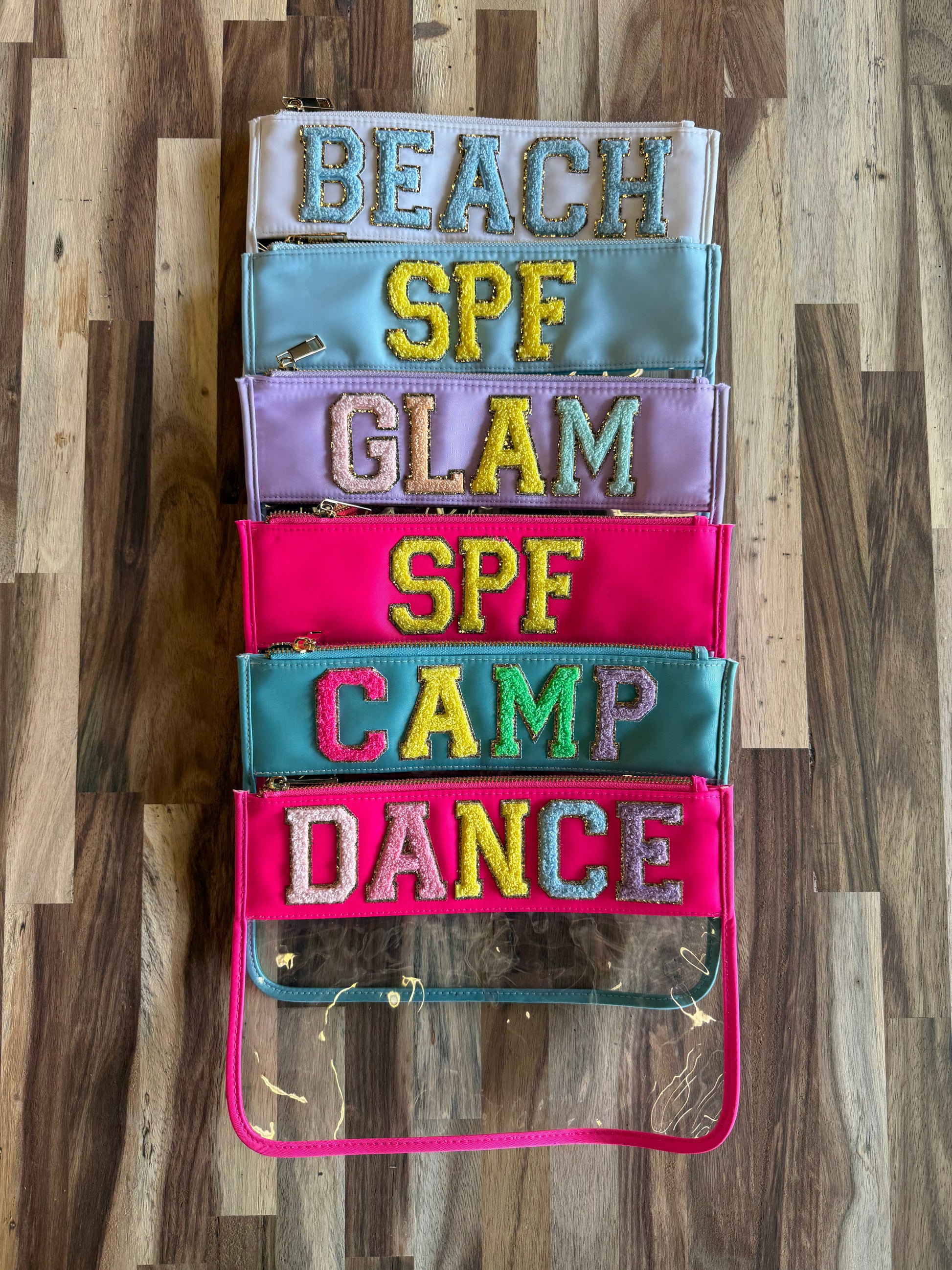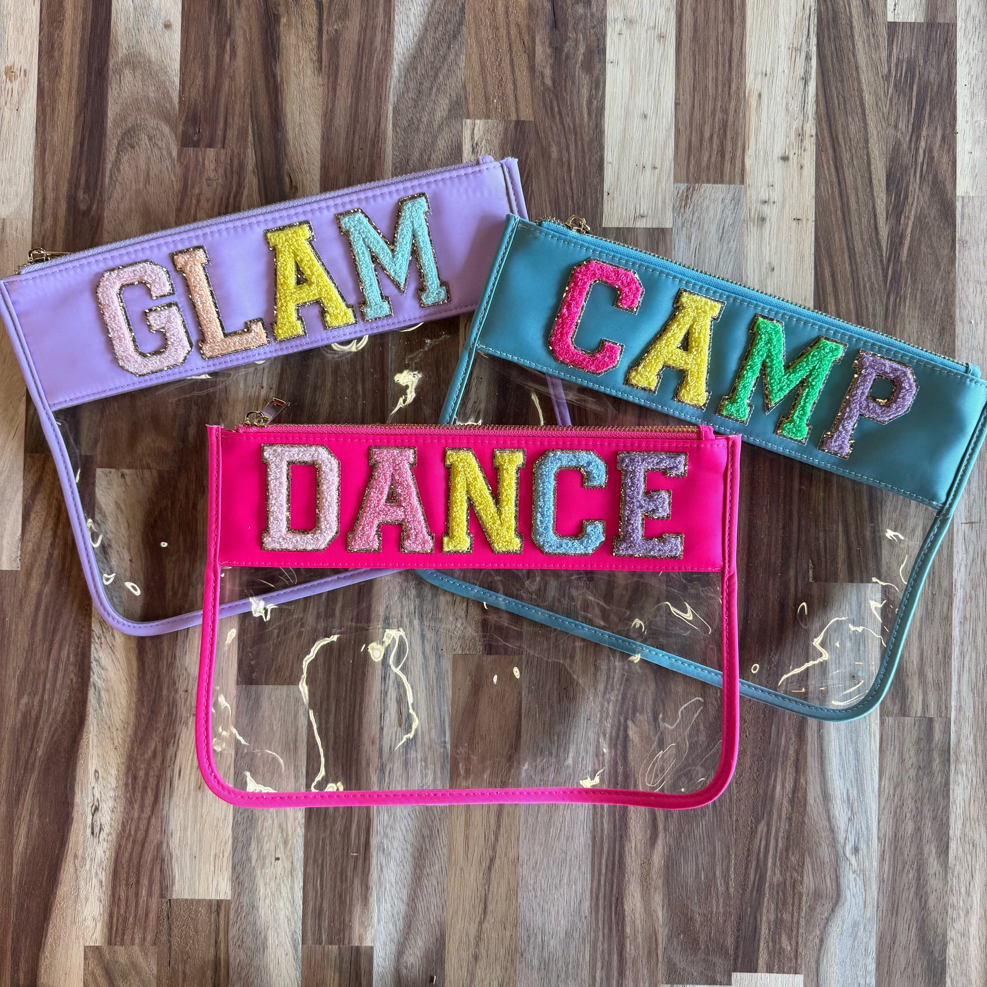 Our clear pouches offer sewn-on letters, high-quality gold zippers and upgraded plastic for a durable pouch to store your essentials in style!