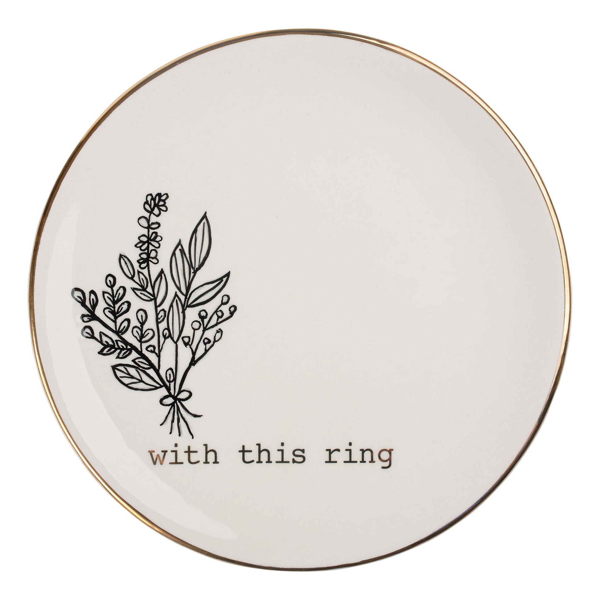 What would newlyweds need but a special place to hold their new rings! Our simple yet stunning With This Ring Trinket Tray will remind them of their commitment and love for one another.